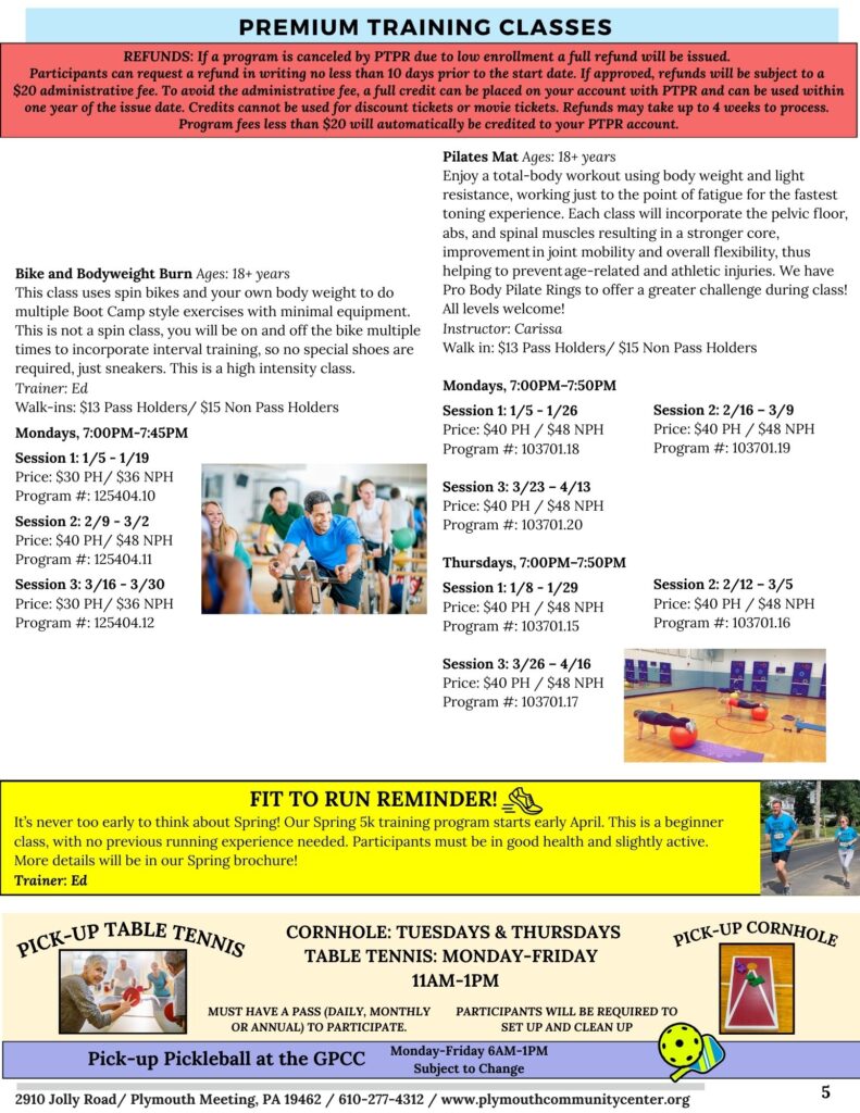 PREMIUM TRAINING CLASSES – Smaller class size than regular group fitness classes for a more personalized workout! Classes run based on having enough participants to cover the cost of the class so refunds can only be granted prior to the start date. Don’t wait to register as some of these classes fill quickly!